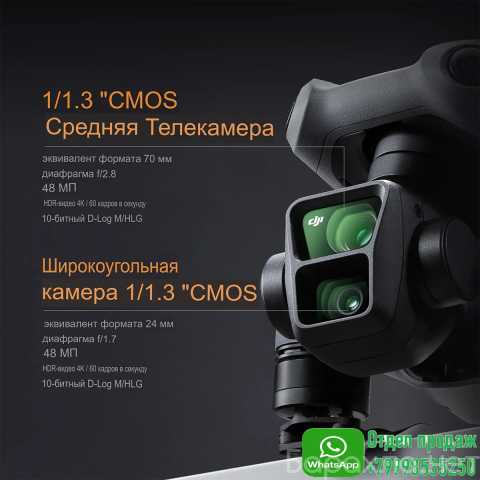 Матрицы обеих камер DJI Air 3 поддерживают двойное нативное ISO, на выход напрямую выдают 4K HDR видео при 60 кадрах в секунду без обрезки. Также обе камеры поддерживают 10-битные цветовые профили D-Log M и HLG. Первый сохраняет больше информации о светлых и тёмных областях, второй записывает с более широким динамическим диапазоном. Это важно при постобработке для получения сочной картинки.